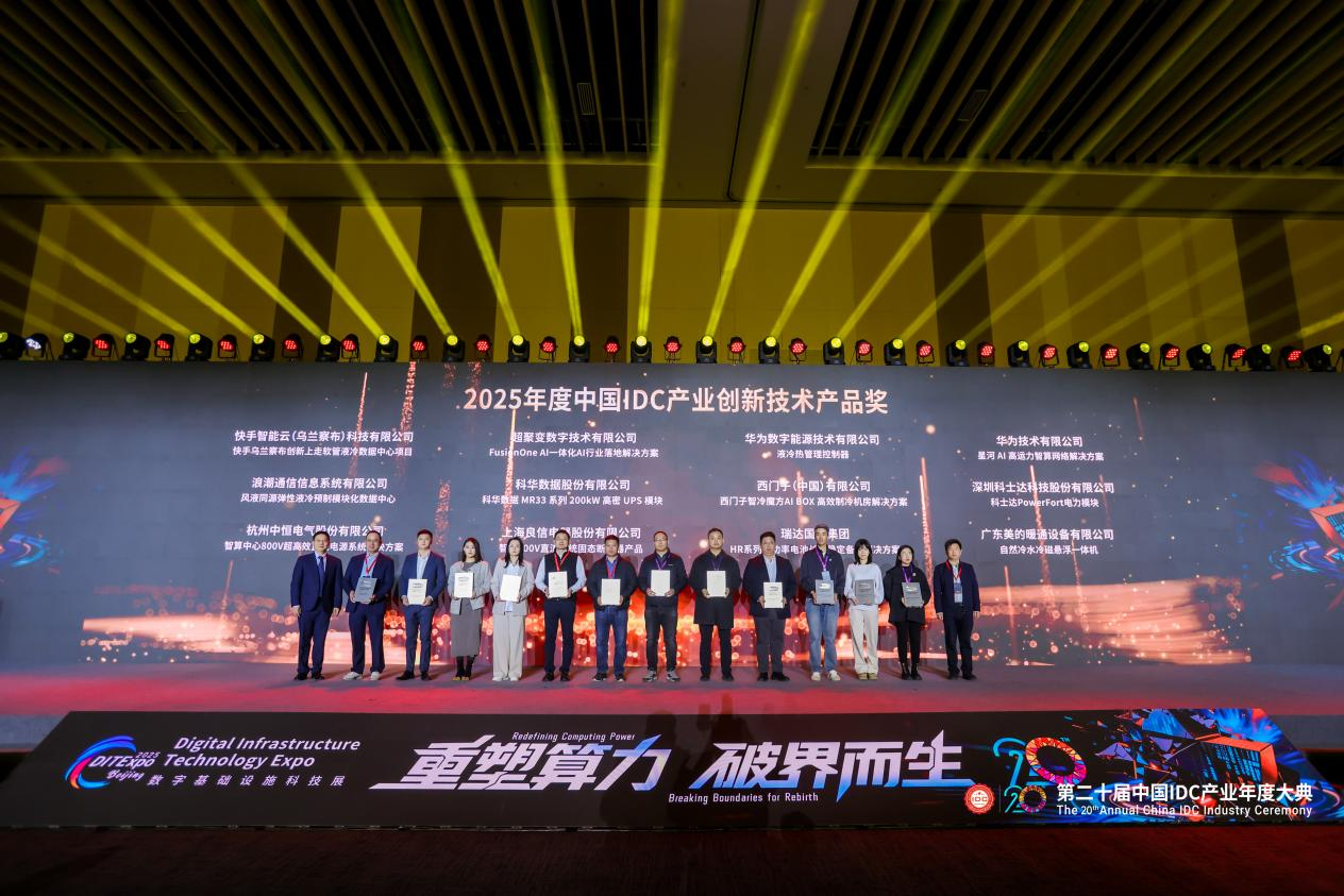 12月10日至11日,第二十届中国IDC产业年度大典(IDCC2025)于北京隆重召开。本届大会以“重塑算力 破界而生”为核心议题,荟聚国内IDC产业上下游核心力量,围绕算力基础设施建设、产业技术革新、可持续发展等关键方向展开深度研讨,为我国算力产业的进阶升级搭建了高端交流与协同合作平台。